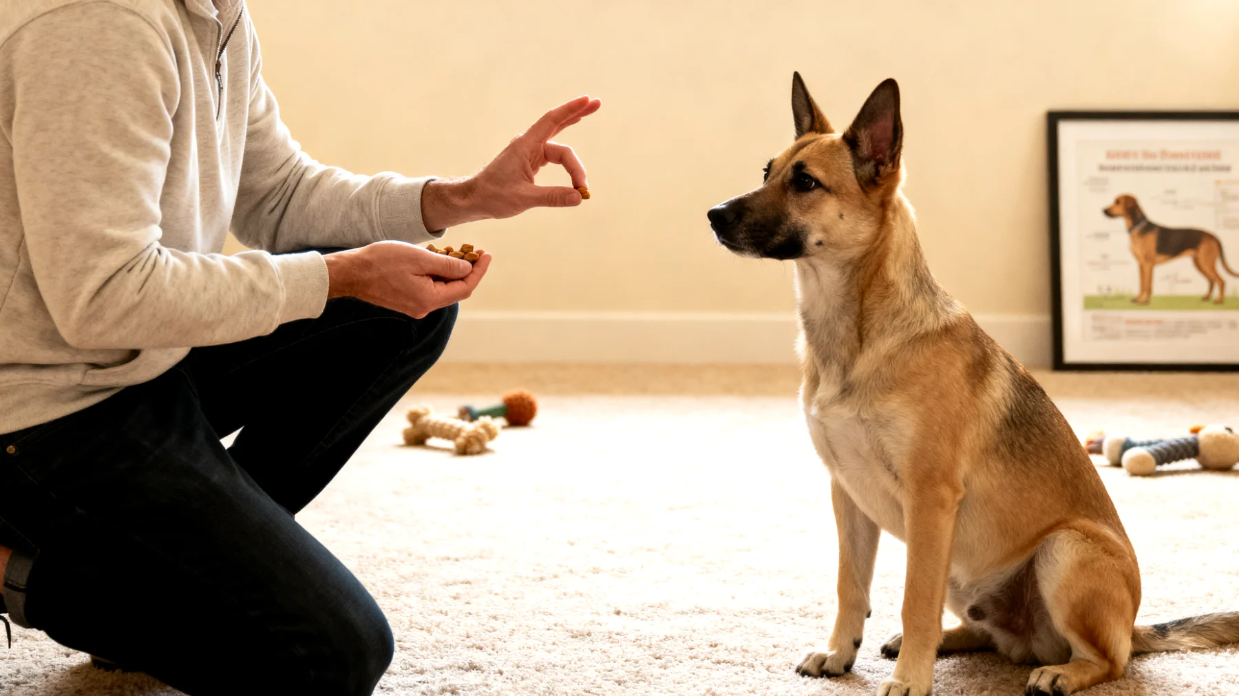 - Höchste Motivation: Oft hochwertige Proteinsnacks wie gefriergetrocknete Leber oder Käse – reserviert für neue oder schwierige Übungen